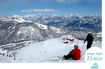 No matter what your level is, there is a variety of suitable terrain waiting for you at the ski resorts in the Hakuba Valley. Although our resort is located outside of downtown Hakuba, access to the area’s ski resorts couldn’t be easier!